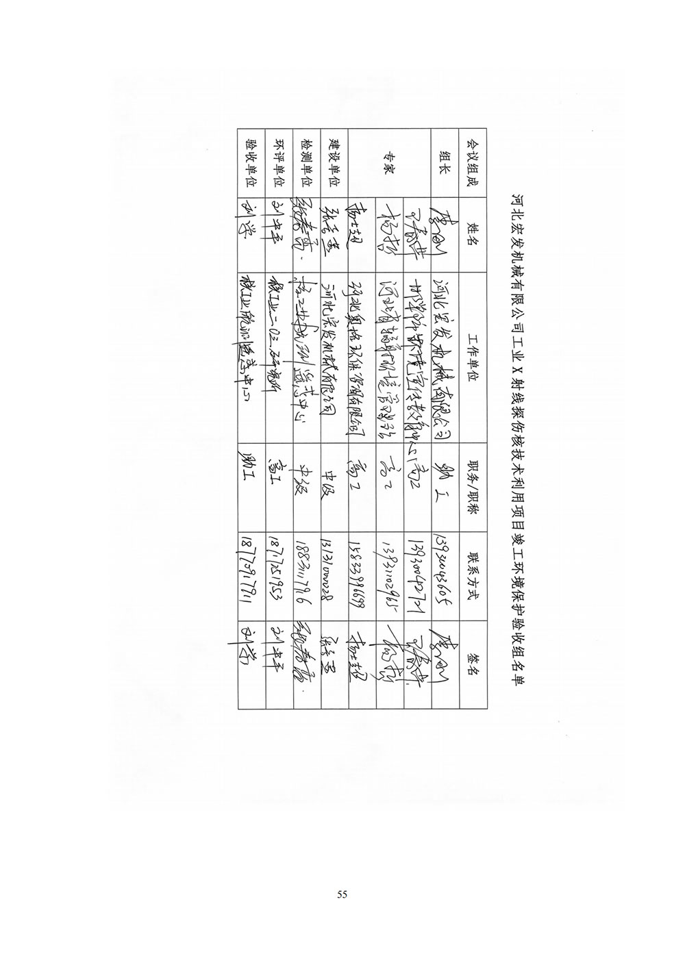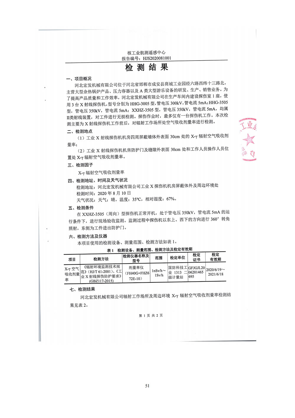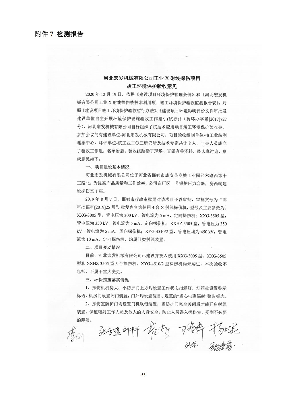 河北宏發(fā)機(jī)械工業(yè)X射線探傷核技術(shù)利用項(xiàng)目竣工驗(yàn)收監(jiān)測表