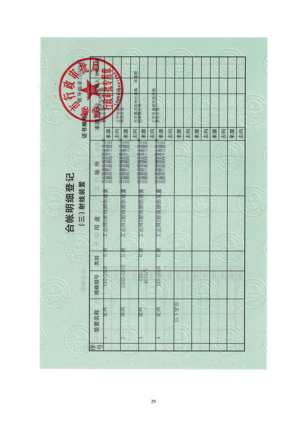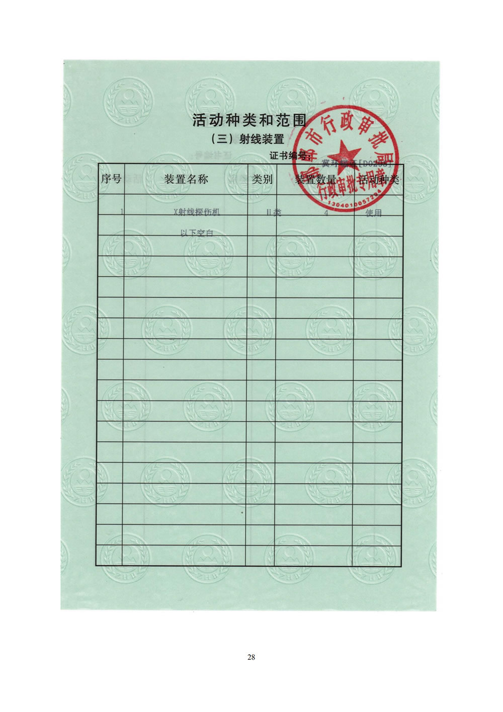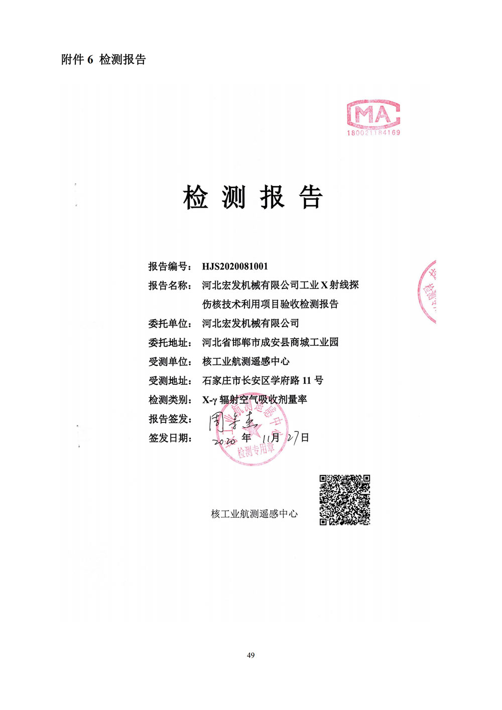 河北宏發(fā)機(jī)械工業(yè)X射線探傷核技術(shù)利用項(xiàng)目竣工驗(yàn)收監(jiān)測表